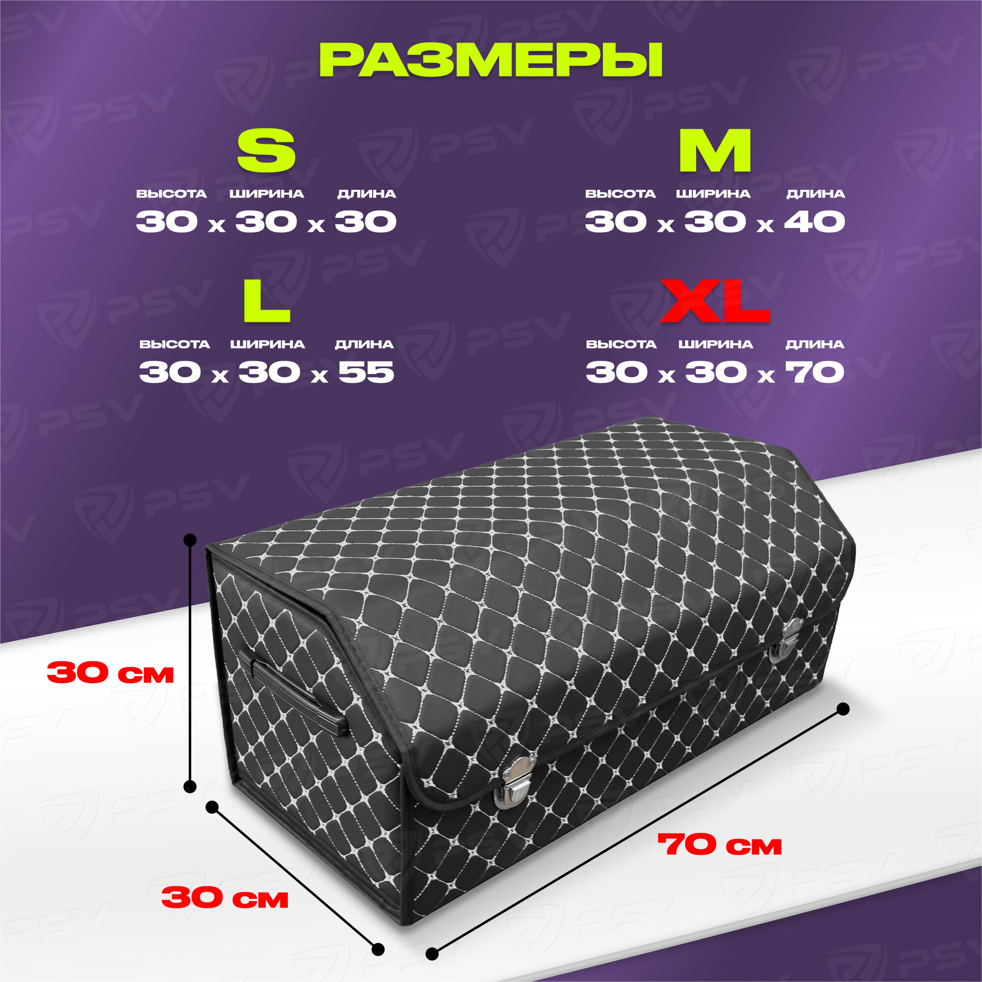 Сумка-органайзер в машину 3D PSV черно-белая, экокожа, XL - 30х30х70см информация: