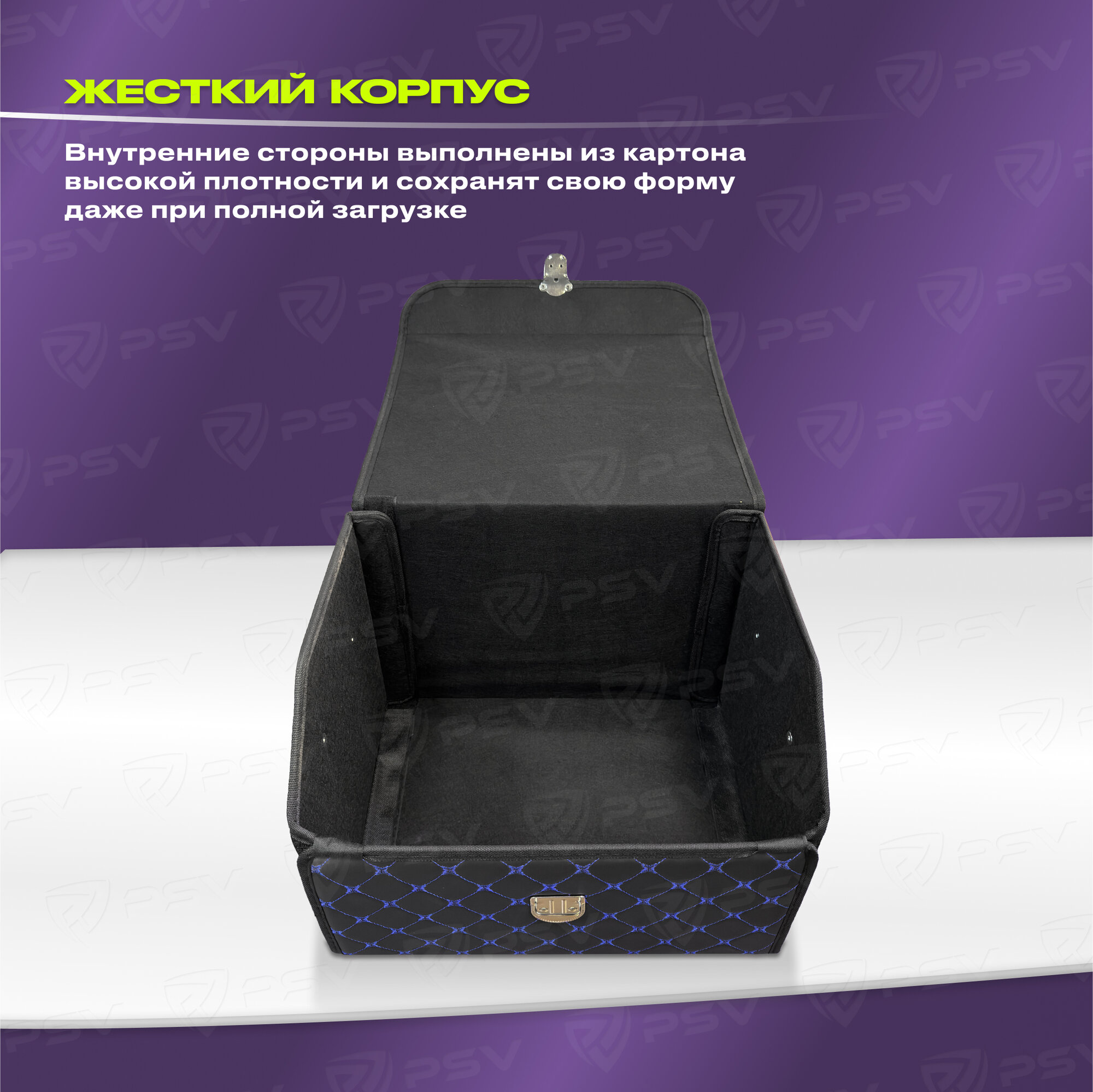 Саквояж в багажник автомобильный эко кожа черная синий ромб, объем 45 л