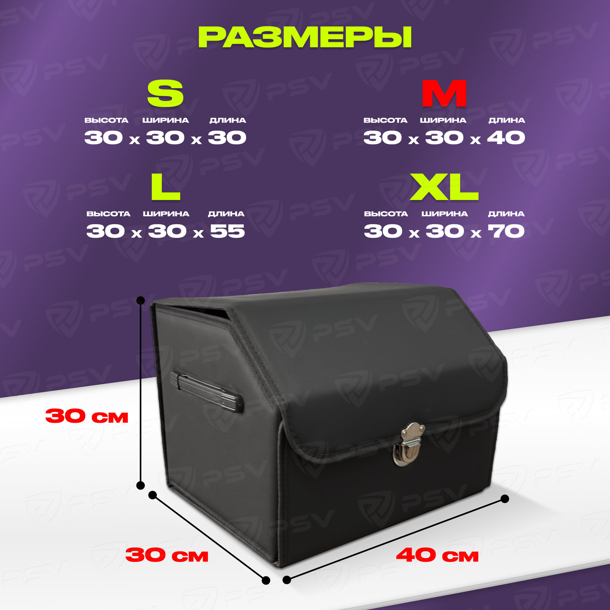 Сумка-органайзер в машину 3D PSV черная, экокожа, M - 30х30х40 см информация: