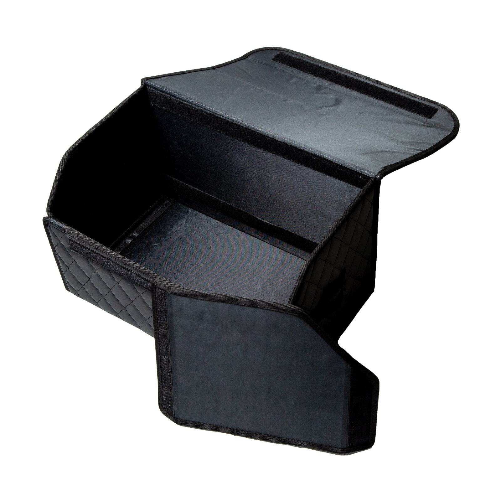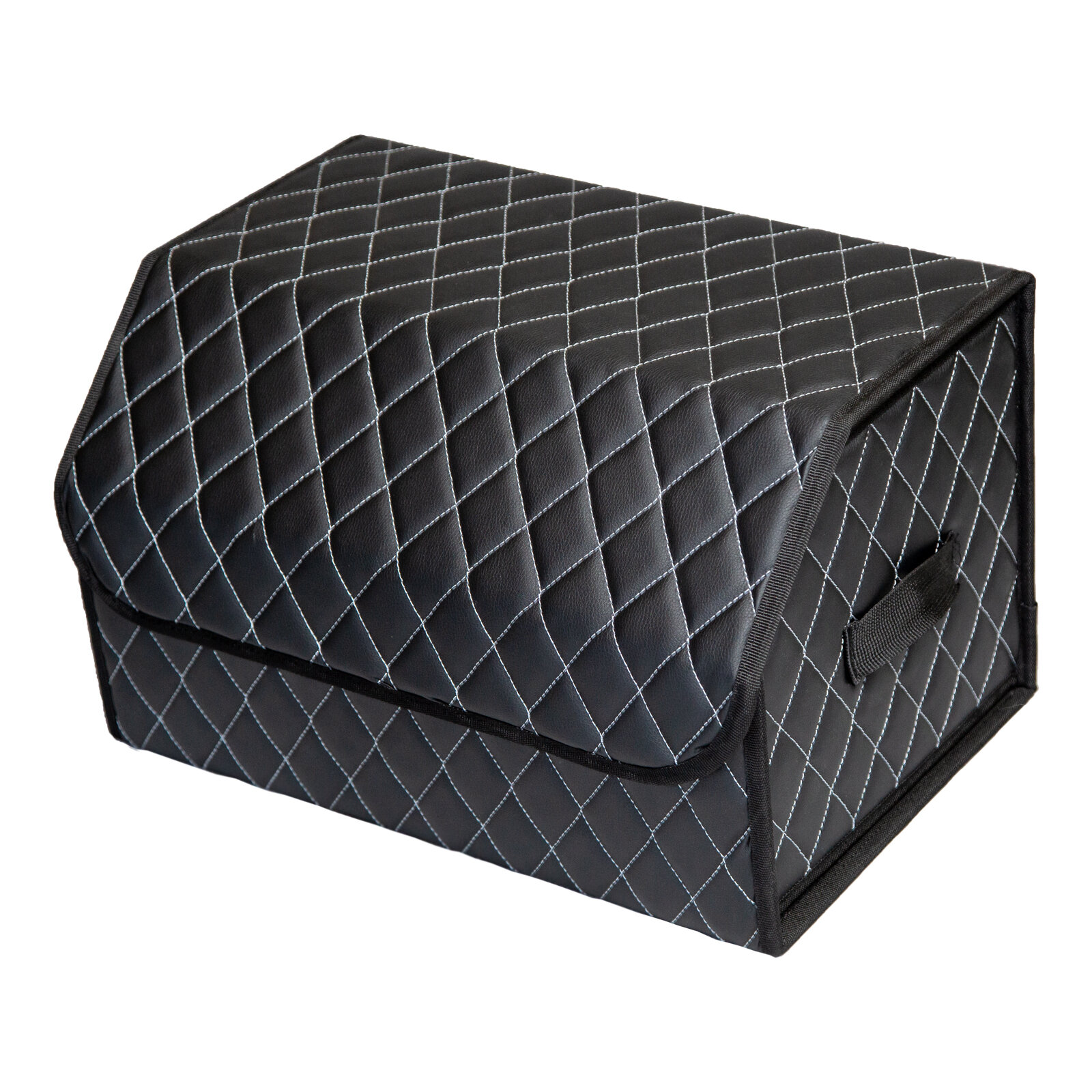 Саквояж в багажник автомобильный эко кожа черная синий ромб, объем 45 л