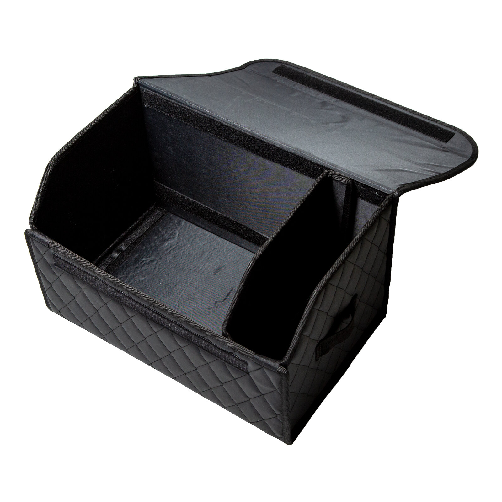 Саквояж в багажник автомобильный эко кожа черная синий ромб, объем 45 л