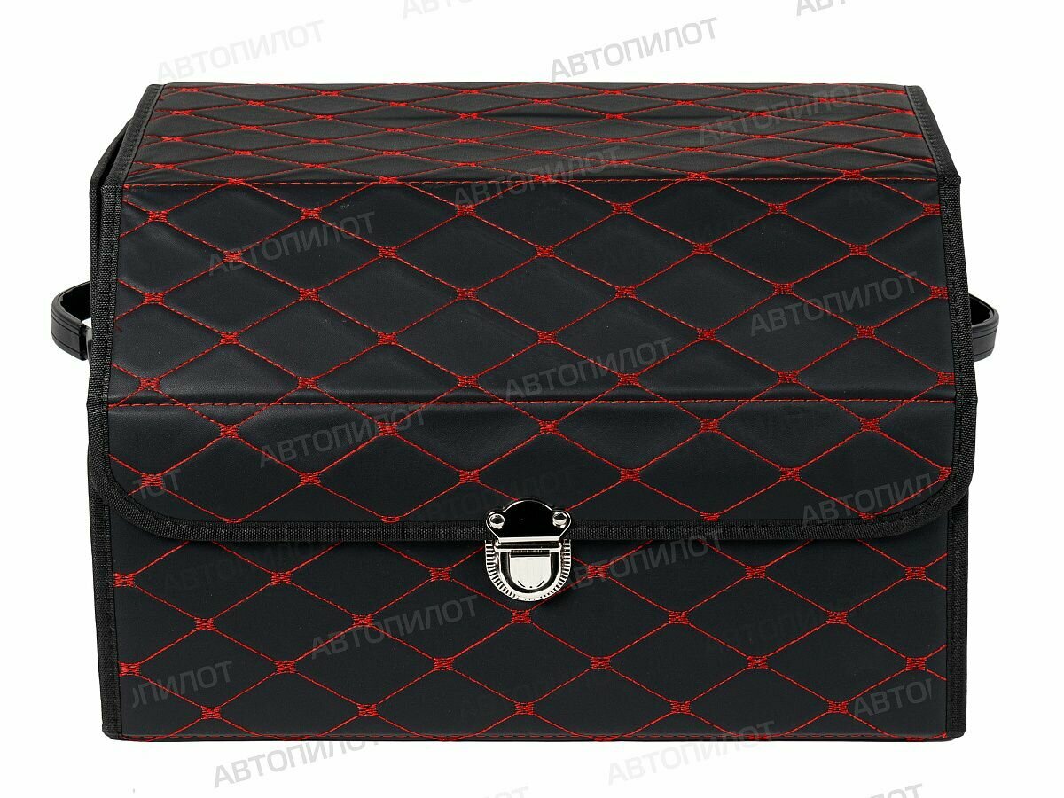 Сумка-органайзер в багажник Опель Инсигния (2008 - 2013) лифтбек / Opel Insignia, экокожа , Черный с красной строчкой, Размер: 30x30x45см информация: