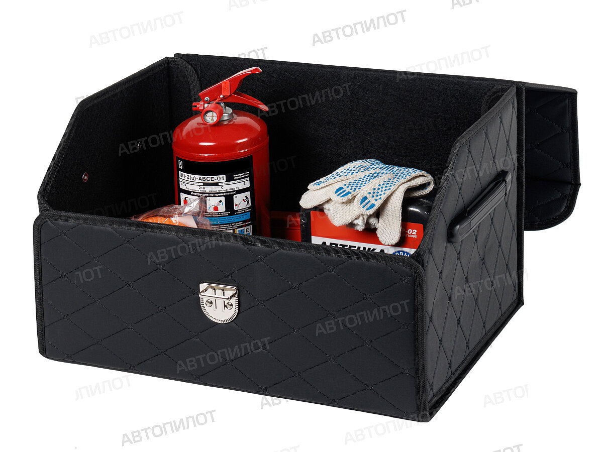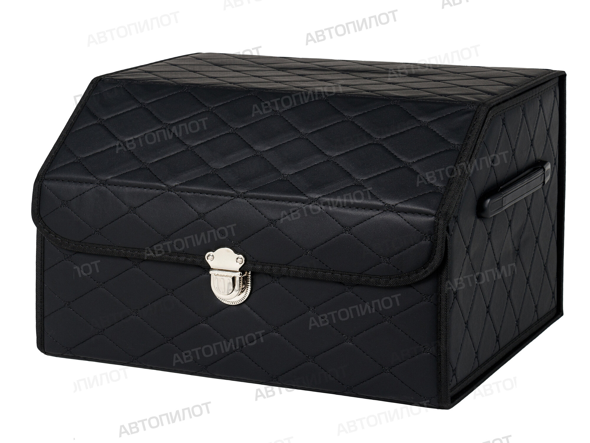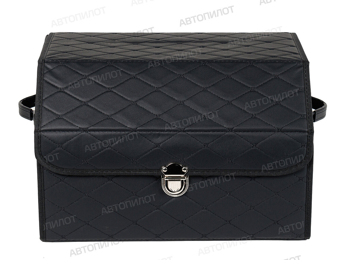 Саквояж в багажник автомобильный эко кожа черная синий ромб, объем 45 л