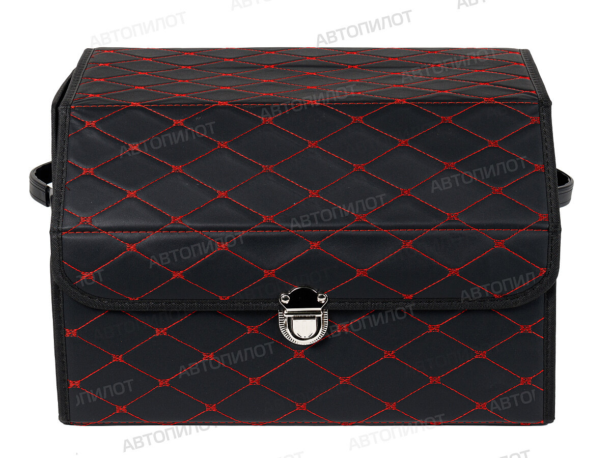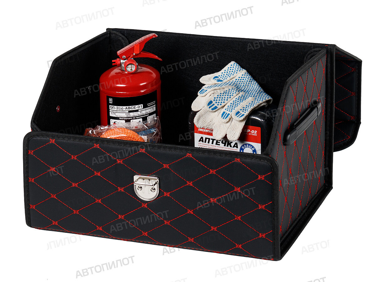 Сумка-органайзер в багажник Субару Легаси (2019 - 2024) седан / Subaru Legacy, экокожа , Черный с красной строчкой, Размер М:30x30x55см