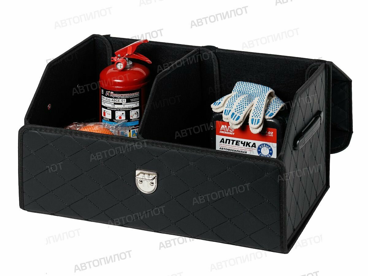 Саквояж в багажник автомобильный эко кожа черная синий ромб, объем 45 л