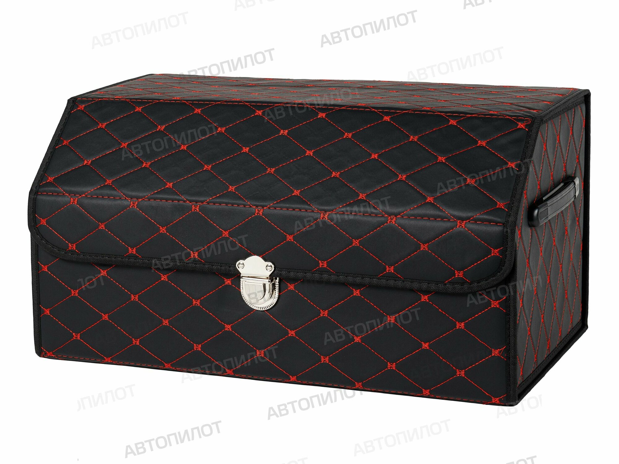 Сумка-органайзер в багажник Субару Легаси (2019 - 2024) седан / Subaru Legacy, экокожа , Черный с красной строчкой, Размер М:30x30x55см