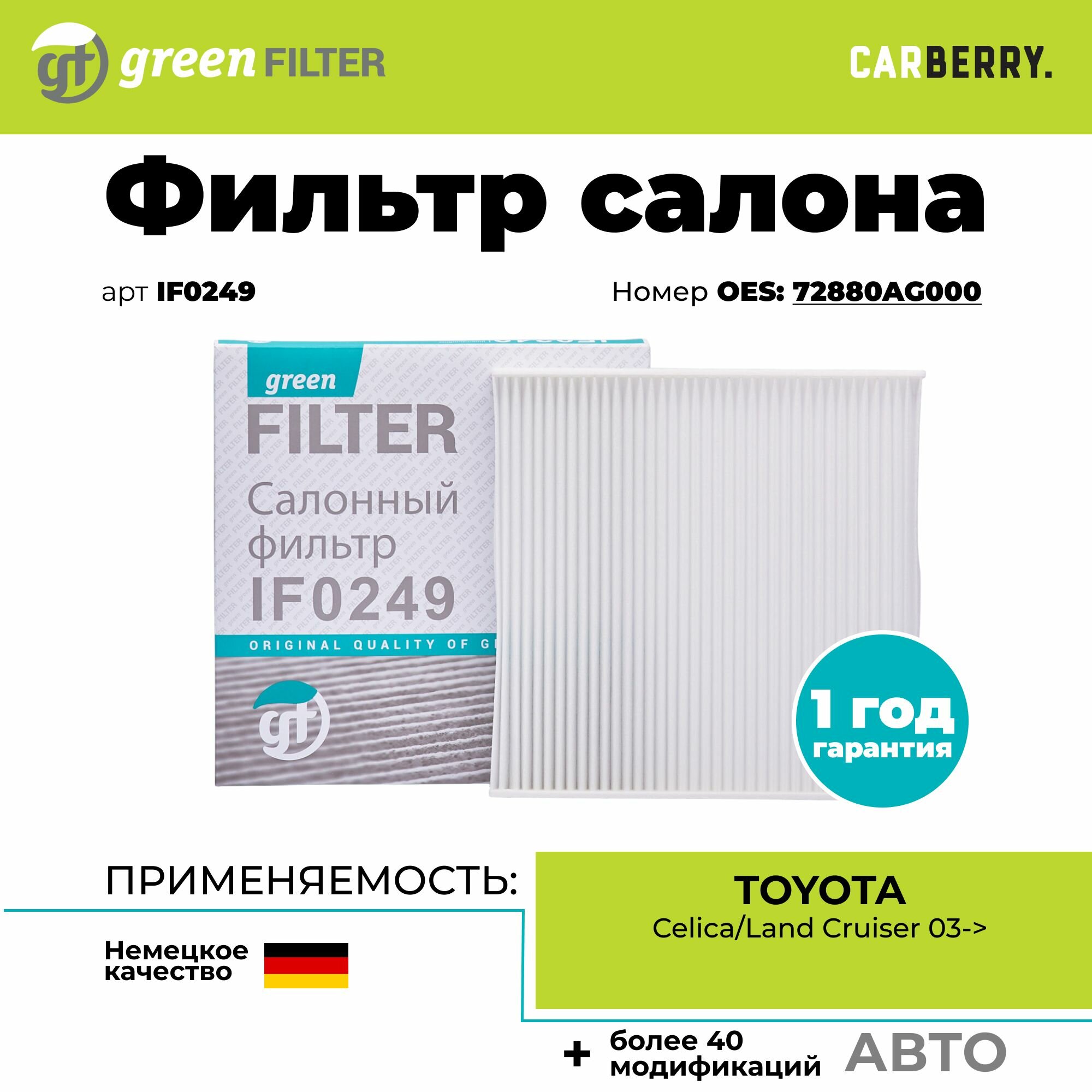 Отзывы на Салонный фильтр IF0249 Green Filter для TOYOTA Celica, Land Cruiser