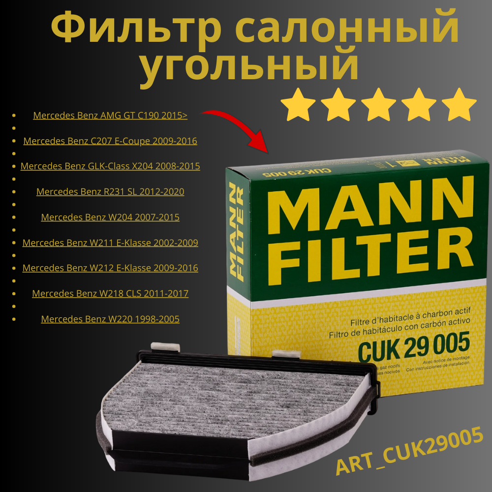 Отзывы на Фильтр салонный угольный Mercedes-Benz Мерседес C-Class E-Class GLK CUK29005 A2128300318