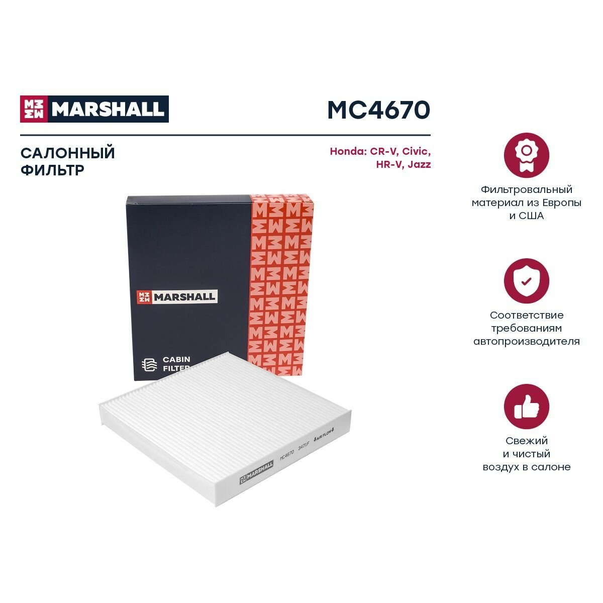 Фильтр салонный Marshall MC4670 информация: