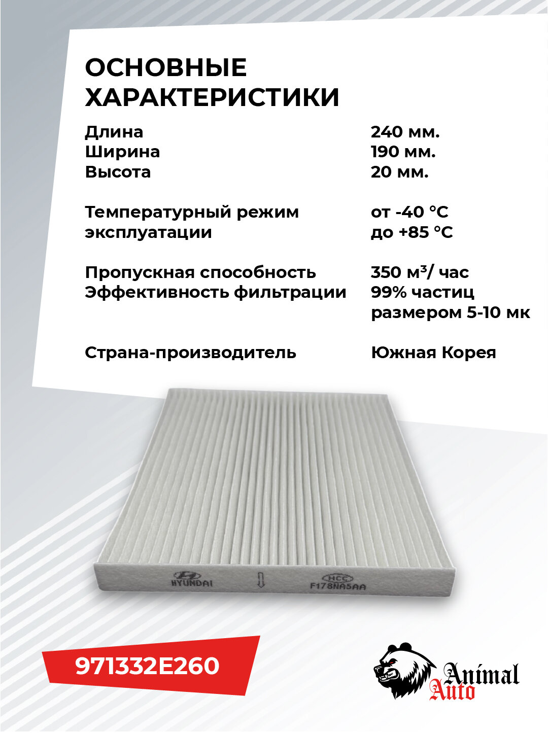 Фильтр салонный 971332E260 на Hyundai Tucson, ix35; Kia Sportage информация: