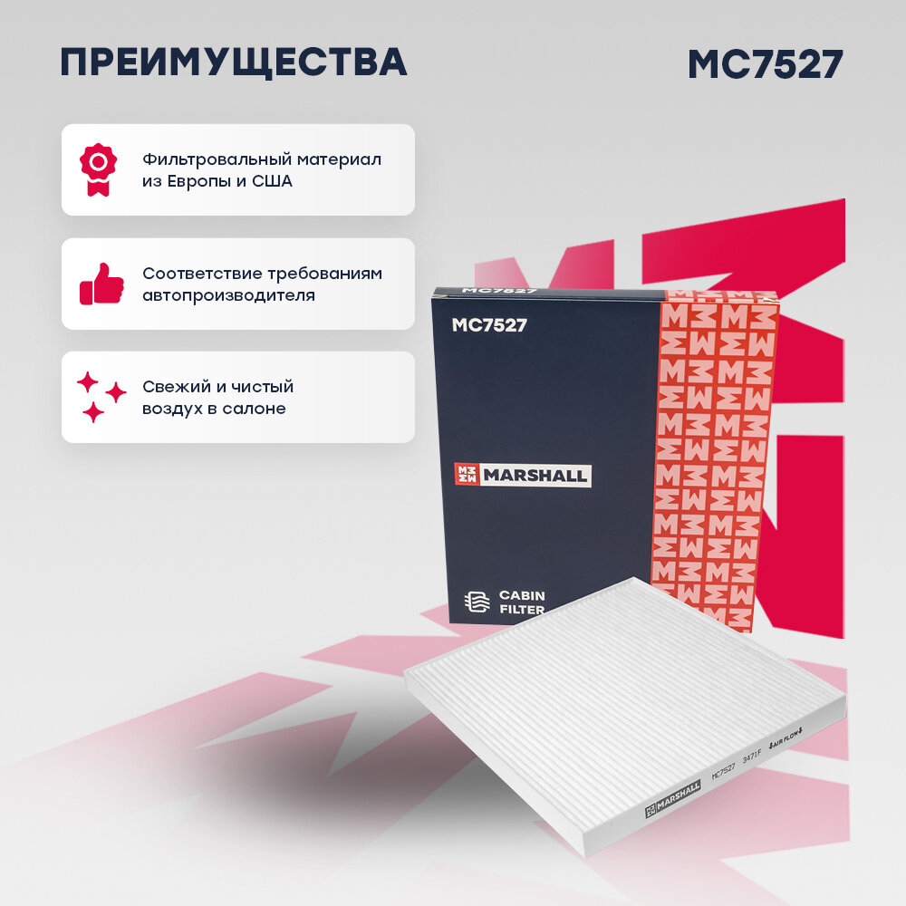 10 цен на Фильтр салона Hyundai Santa Fe (DM) 12-19, Sonata (YF) 09-14; Kia Optima (TF) 12-16 Marshall