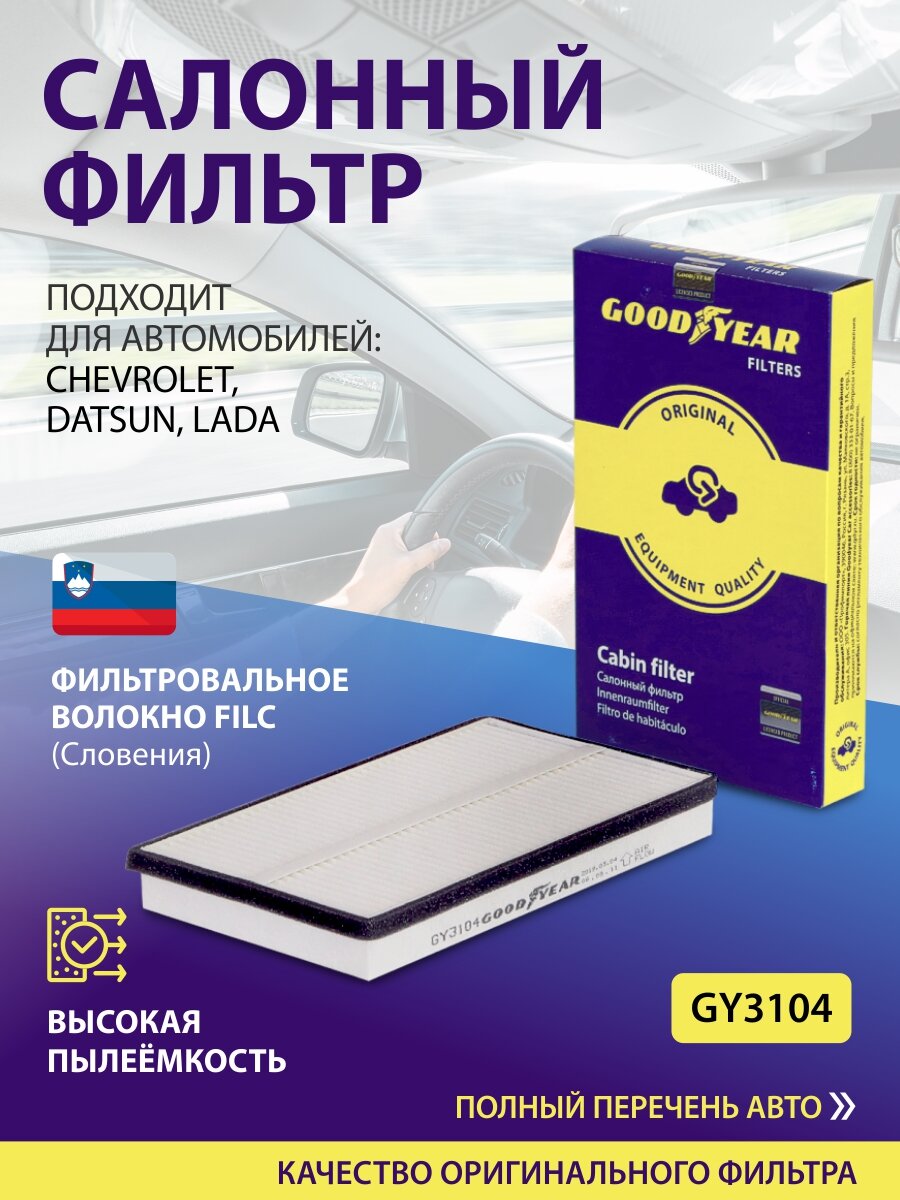 Фильтр салонный автомобильный Goodyear GY3104 LADA GRANTA, KALINA, NIVA, DATSUN mi-Do/on-Do, CHEVROLET(LADA) NIVA информация:
