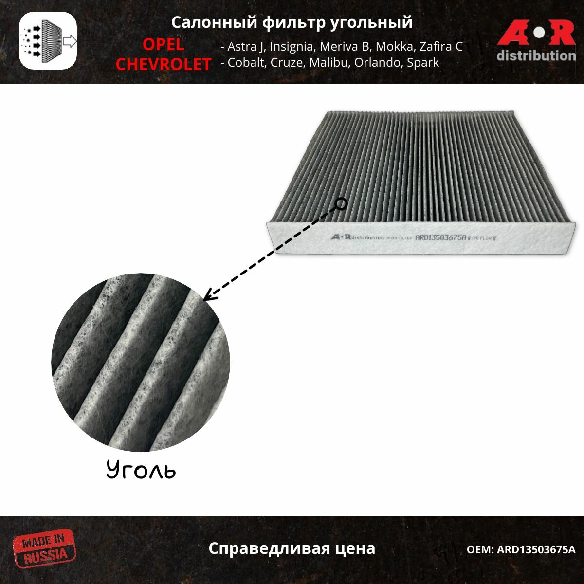 10 цен на Фильтр салонный угольный Astra J 09-, Insignia, Zafira C, Meriva B, Aveo 2, Cruze 09- / OEM 13503675