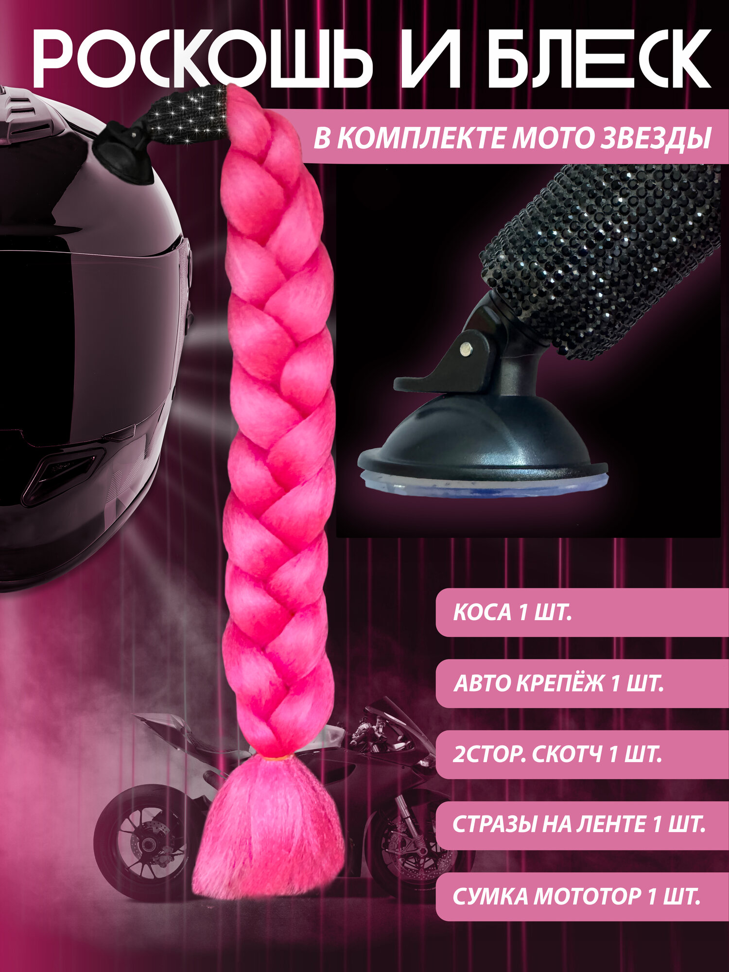 Коса на шлем мото розовая от МОТОТОР, крепление на авто присоску информация: