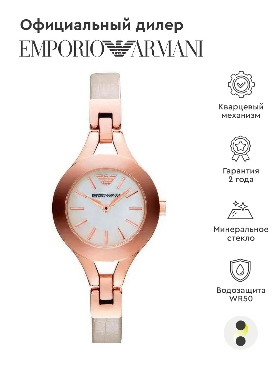 Часы наручные женские Emporio Armani AR11609 кварцевые на стальном браслете золотистого цвета с минеральным стеклом водонепроницаемостью WR50 (5 атм)