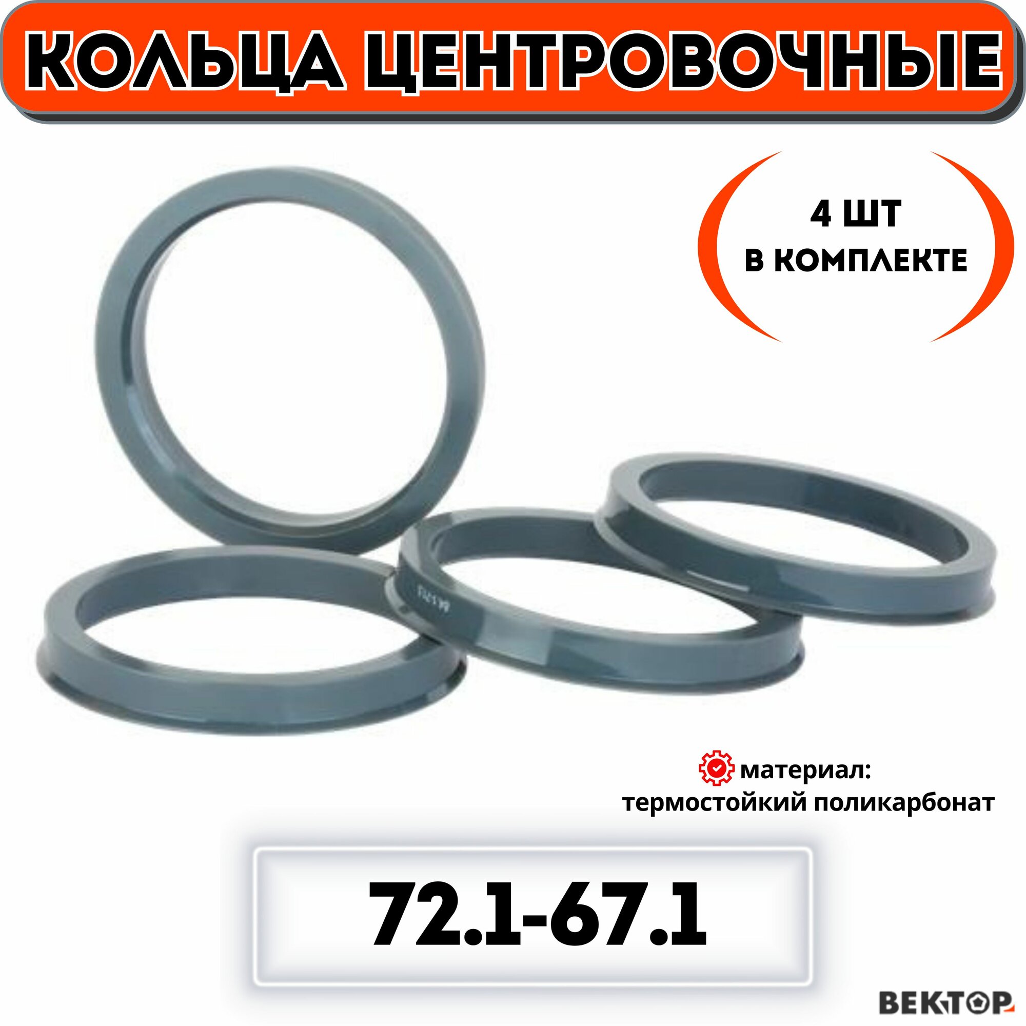 Кольца центровочные для автомобильных дисков 72,1-67,1 "вектор" (комплект 4 шт.) информация: