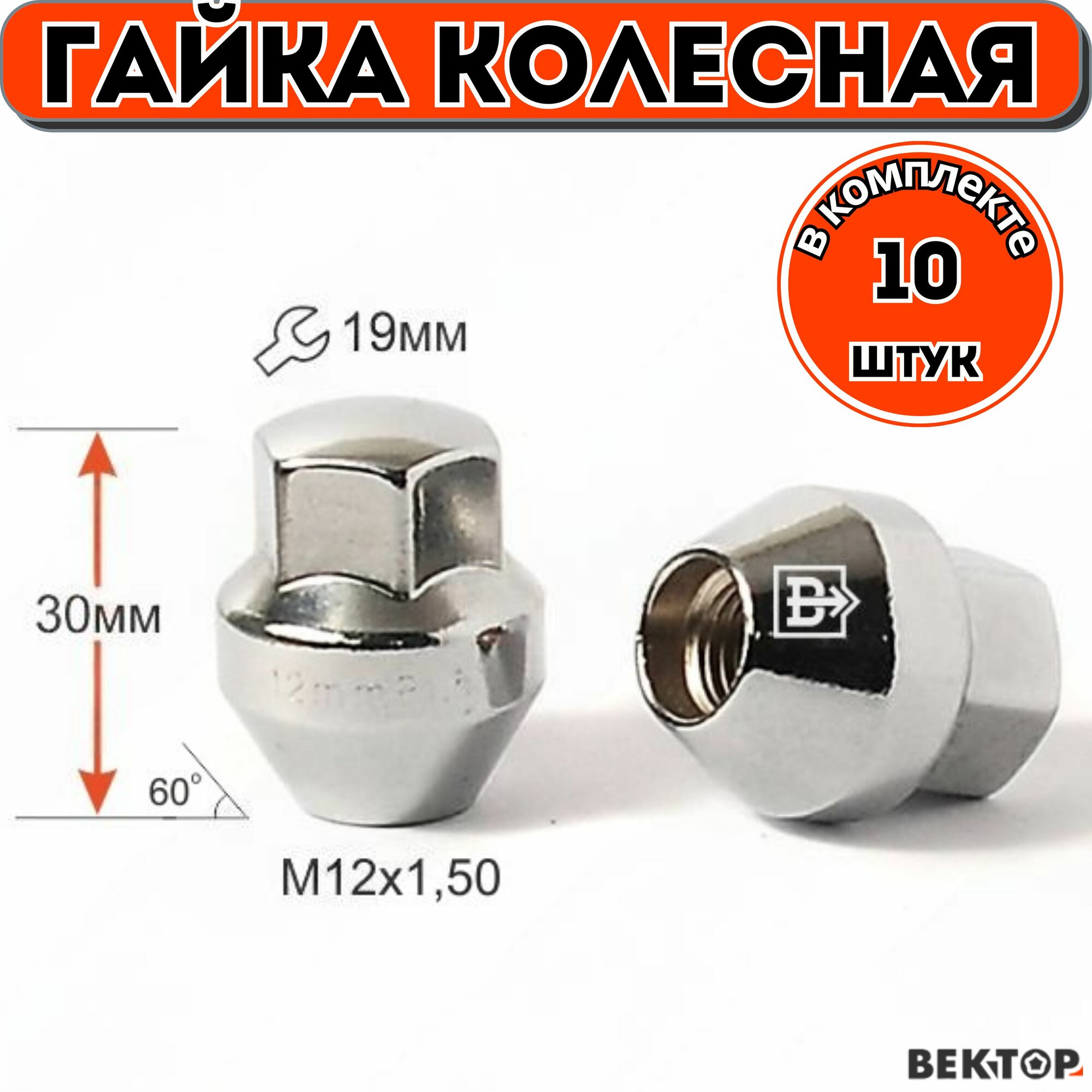 10 цен на Гайка колесная M12X1,50 Хром увеличенный конус с выступом высота 30 мм закрытая Форд кл.19мм, 10 шт