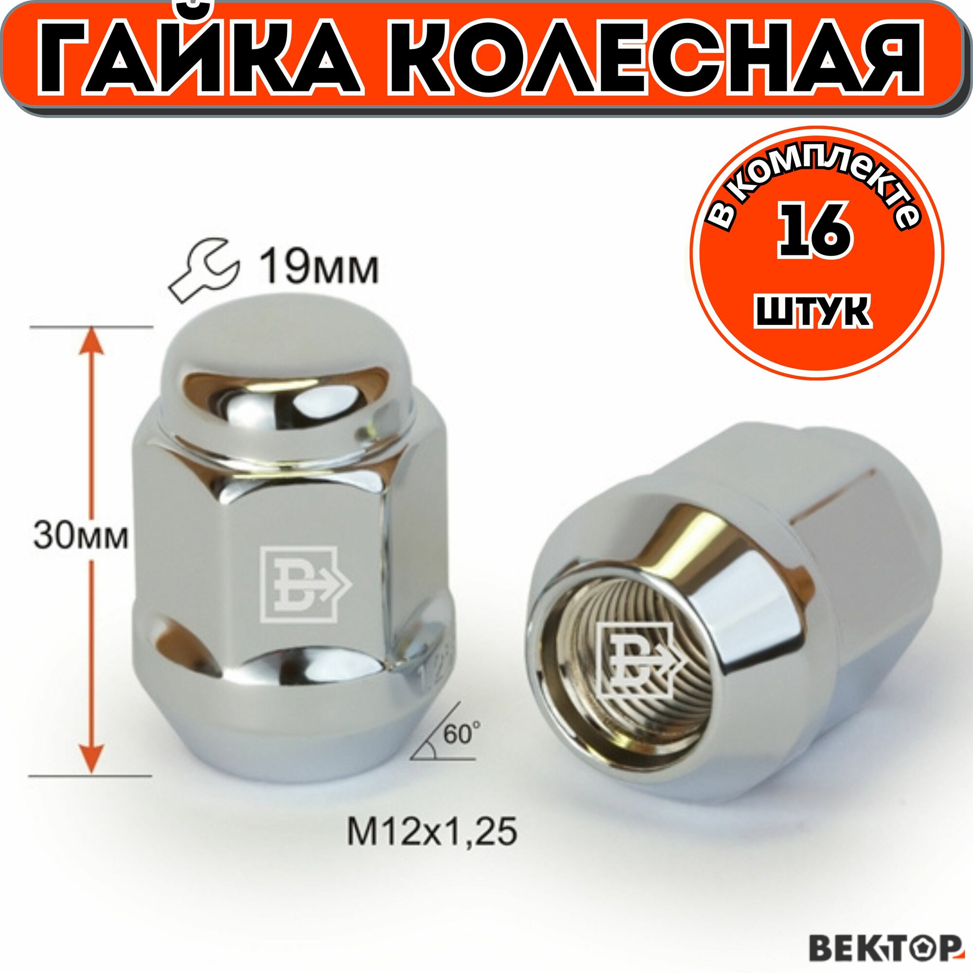 10 цен на Гайки колесные M12X1,25 Хром высота 30 мм Конус ключ 19мм, 16 шт