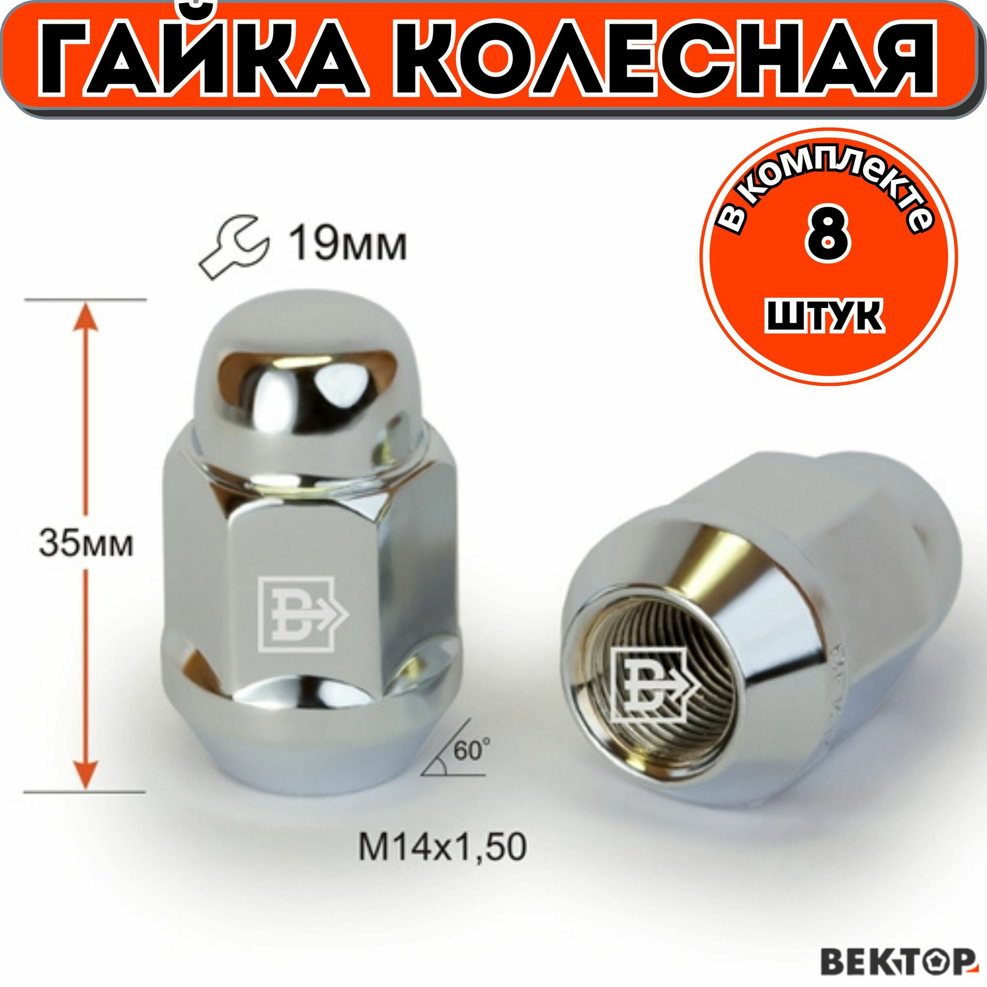 10 цен на Гайка колесная Вектор M14X1,50 Хром, высота 35 мм, Конус, ключ 19мм,8 шт