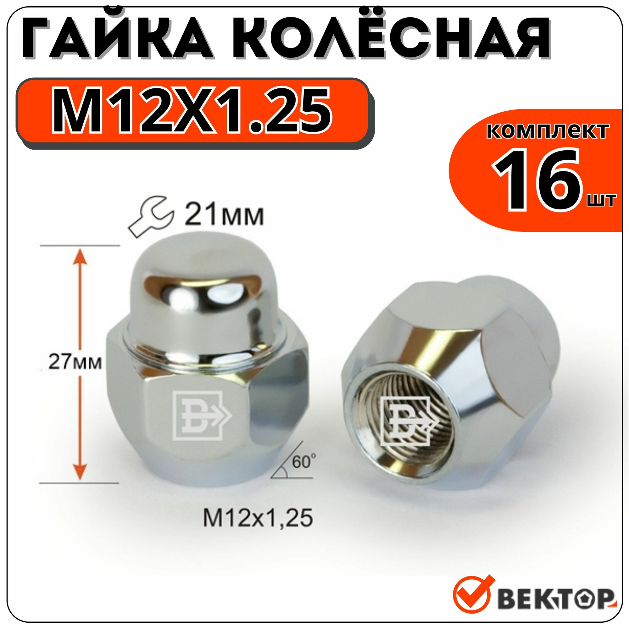 10 цен на Гайка колесная M12X1,25 Хром, высота 27 мм, Конус, ключ 21мм, 16 шт