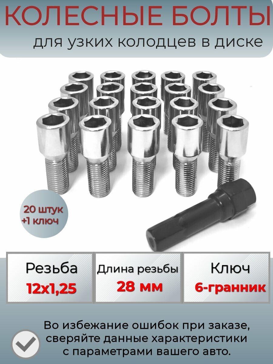 Колесные болты для узких колодцев, узкие болты под внутренний ключ, резьба 12х1,25 информация: