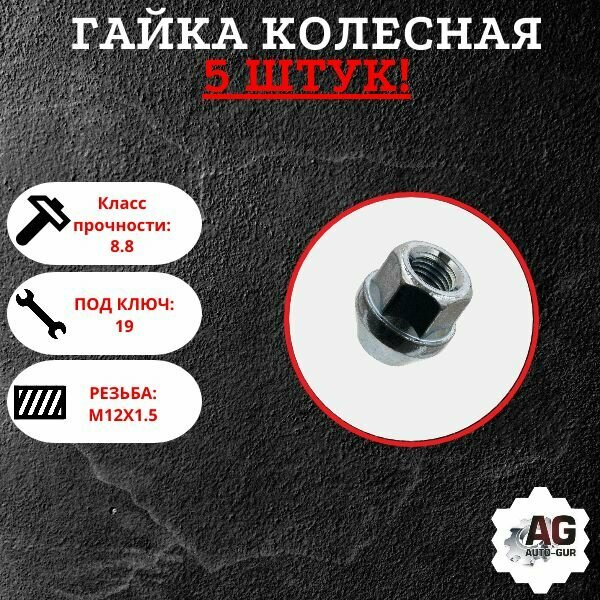 10 цен на Гайка колёсная М12x1.5x22 хром конус, ключ 19 открытая 5 штук