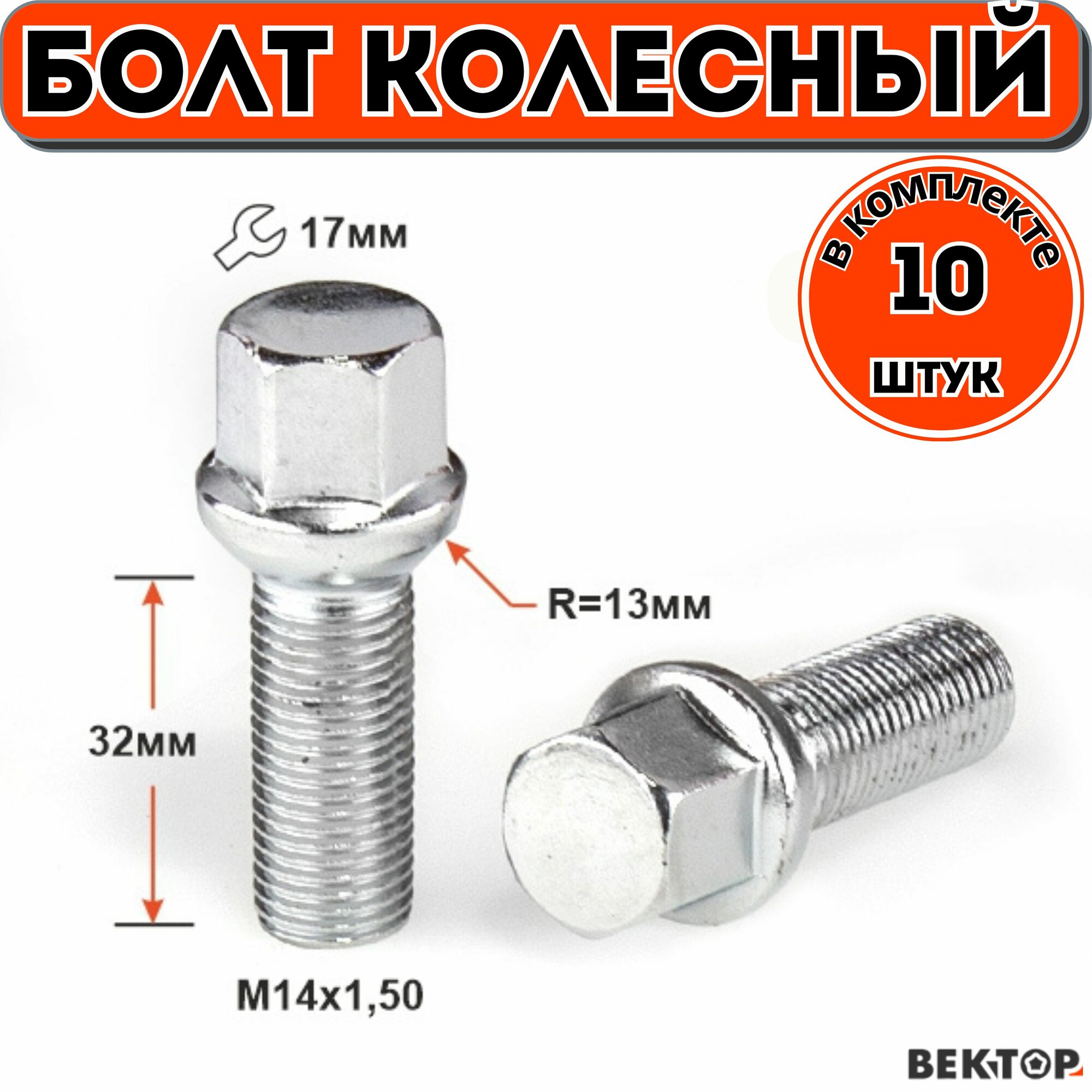 Болт колесный M14x1,50 32мм Сфера Хром Сфера с выступом ключ 17 мм, 10 шт информация: