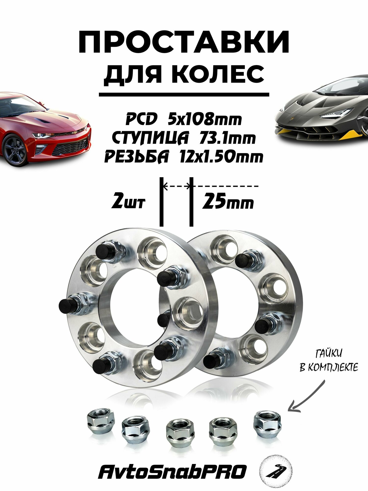 Проставки колесные 5*108 со шпильками и гайками информация: