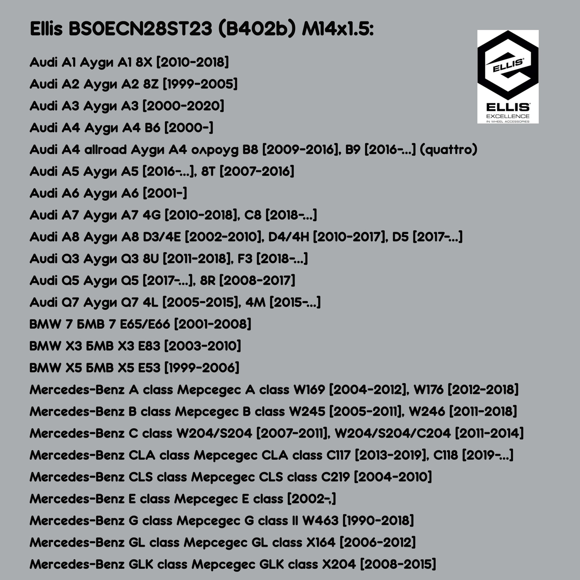 10 цен на Болты колесные Ellis BS0ECN28ST23 (B402b), M14x1.5, спец ключ, 20 штук