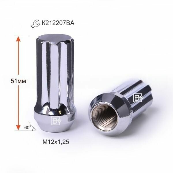 Гайка колесная M12X1,25 Хром, высота 51 мм, Конус с выступом, закрытая, 10 шт информация: