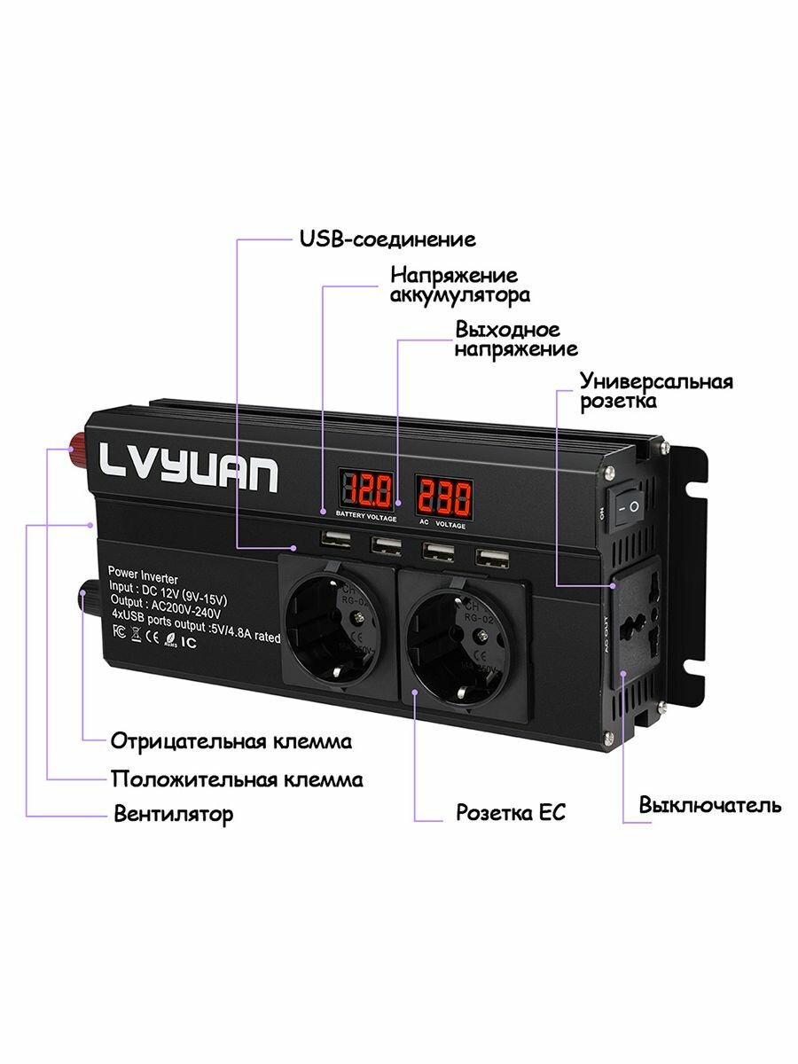 Отзывы на Автомобильный преобразователь напряжения 2000Вт 12В-220В инвертор Lvyuan автомобильный 2000w 12v-220v Power inverter.