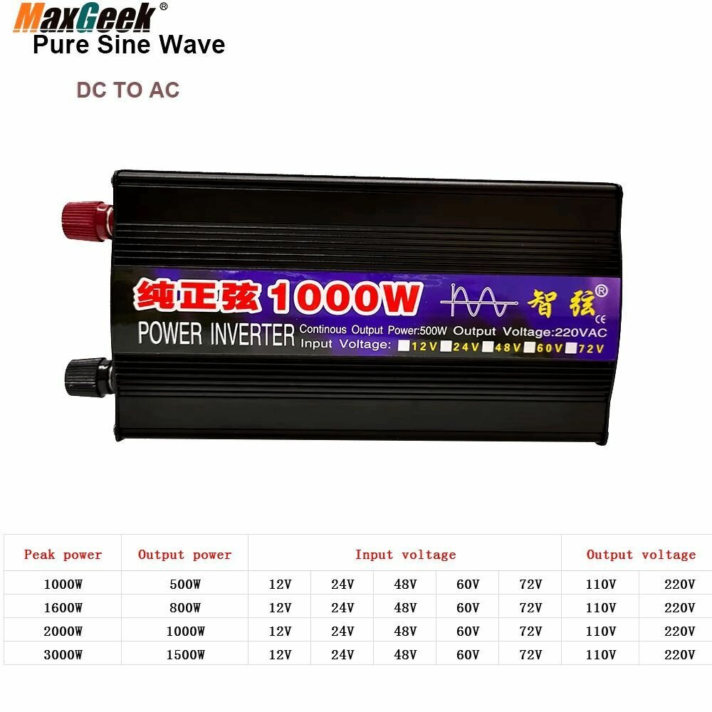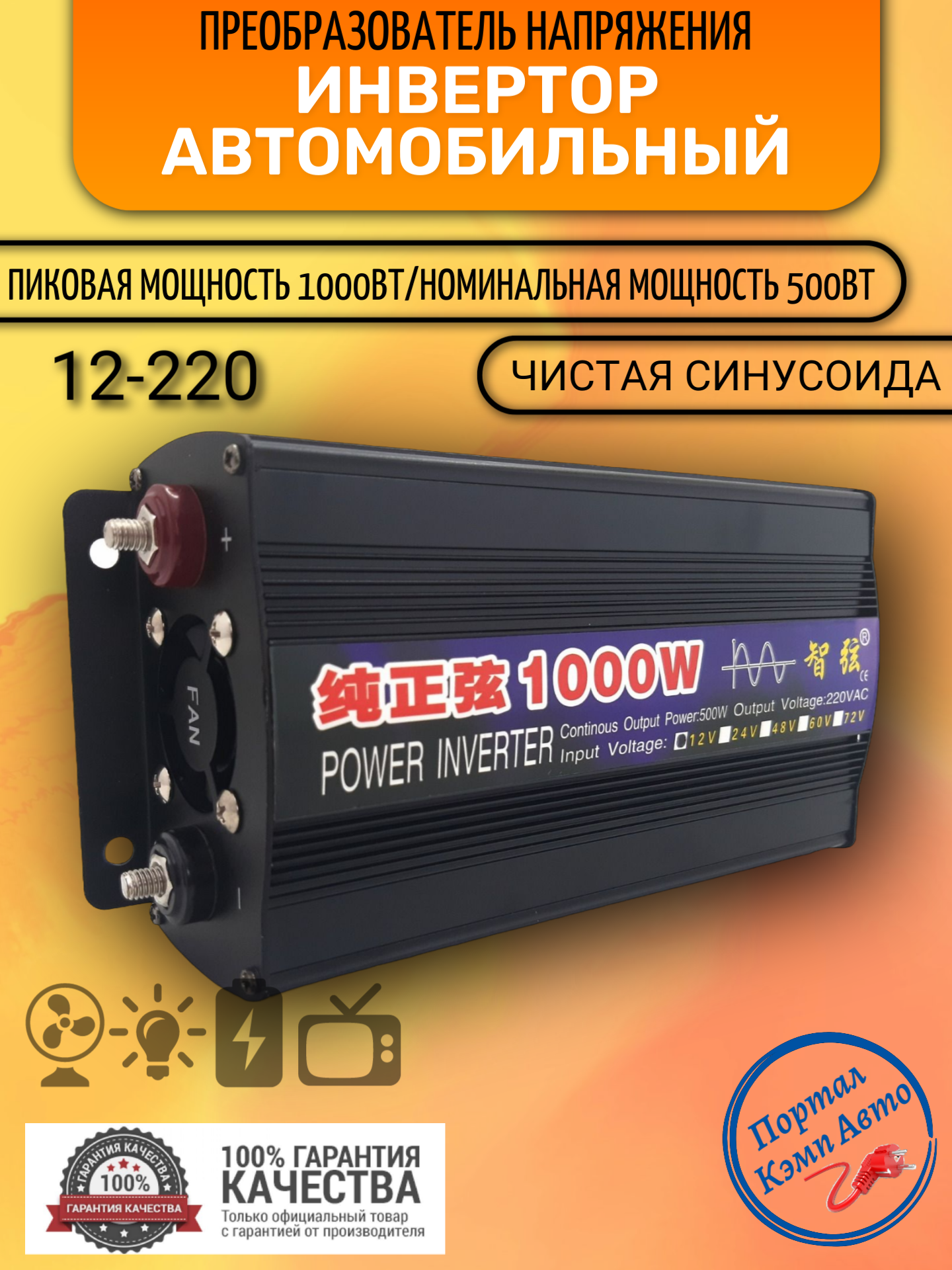 Автомобильный преобразователь напряжения, инвертор 1000w 12v-220v Чистый синус информация: