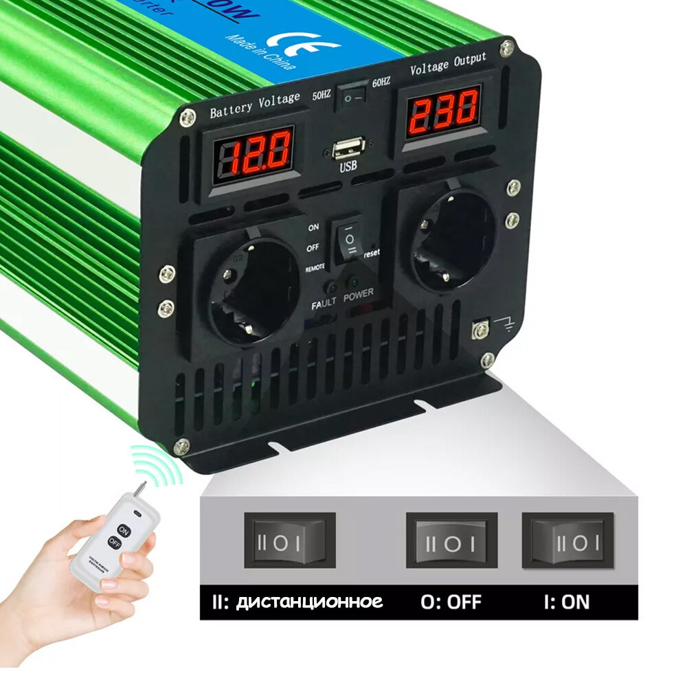 Power Inverter 3000 EcoHitek Автомобильный инвертор напряжения 12 - 220В (пост нагрузка до 1500 Вт). Подключение приборов, эл. инструмента.