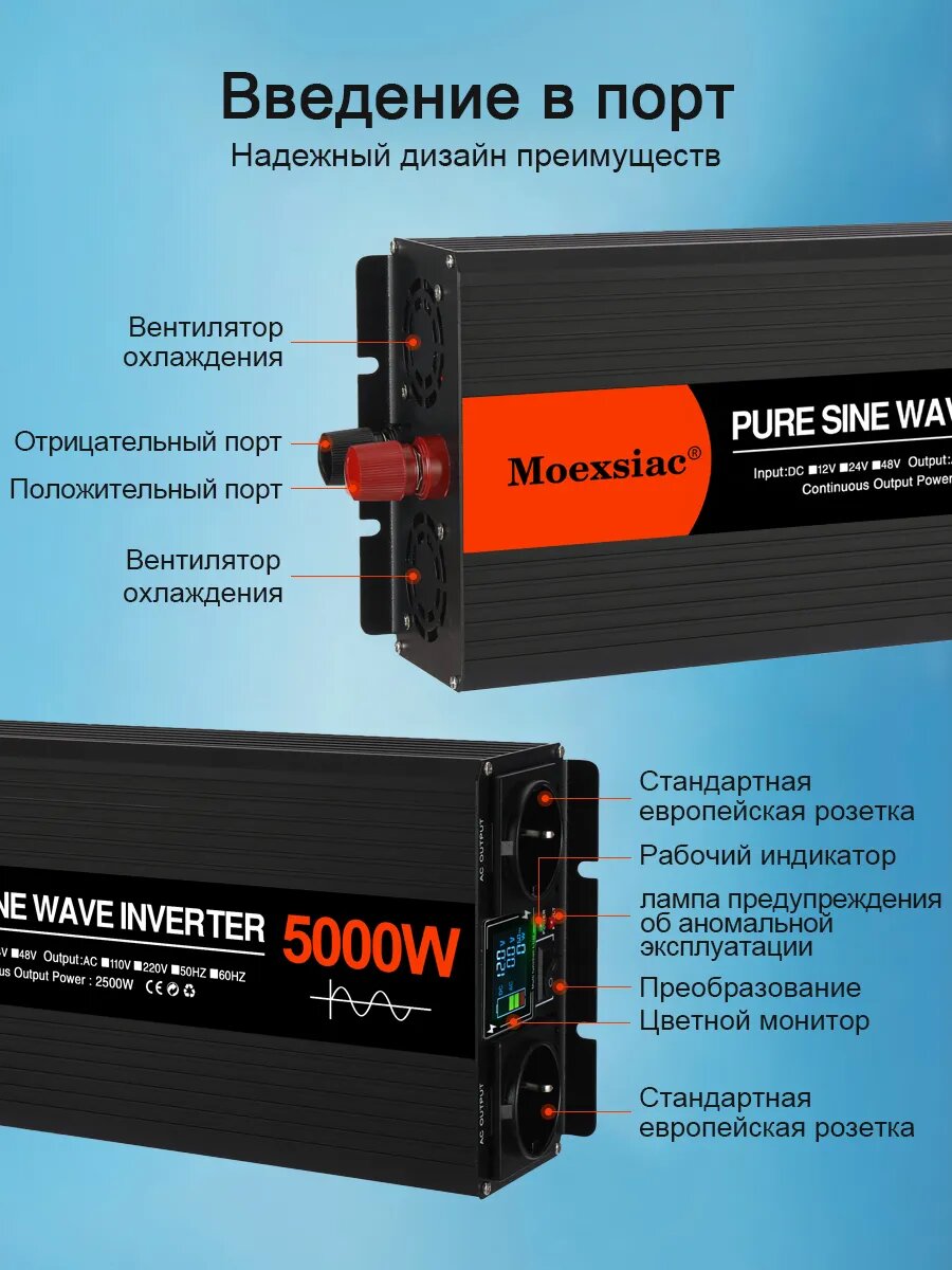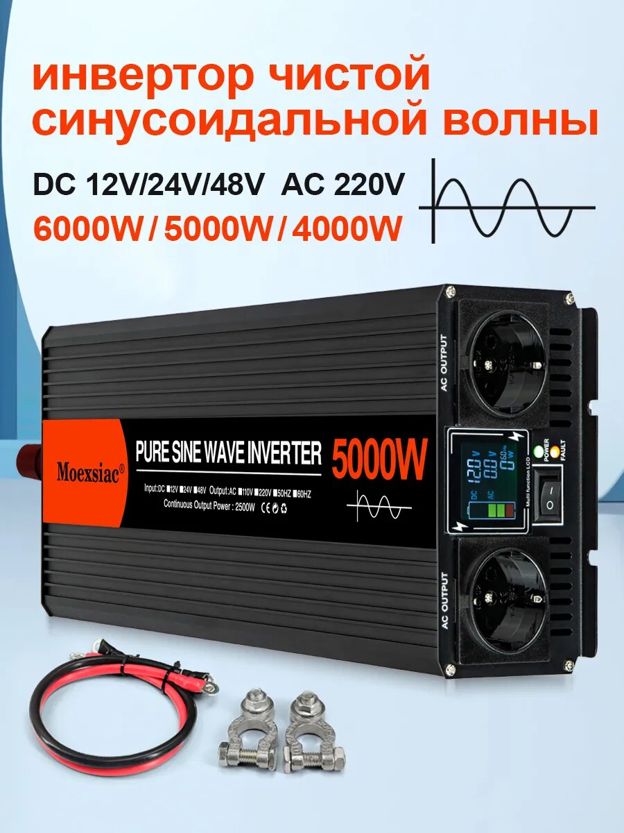 Автомобильный инвертор 6000w12v в 220v, Moexsiac Чистая синусоида Домашний солнечный инвертор DC Трансформатор Освещение 11 116 ₽