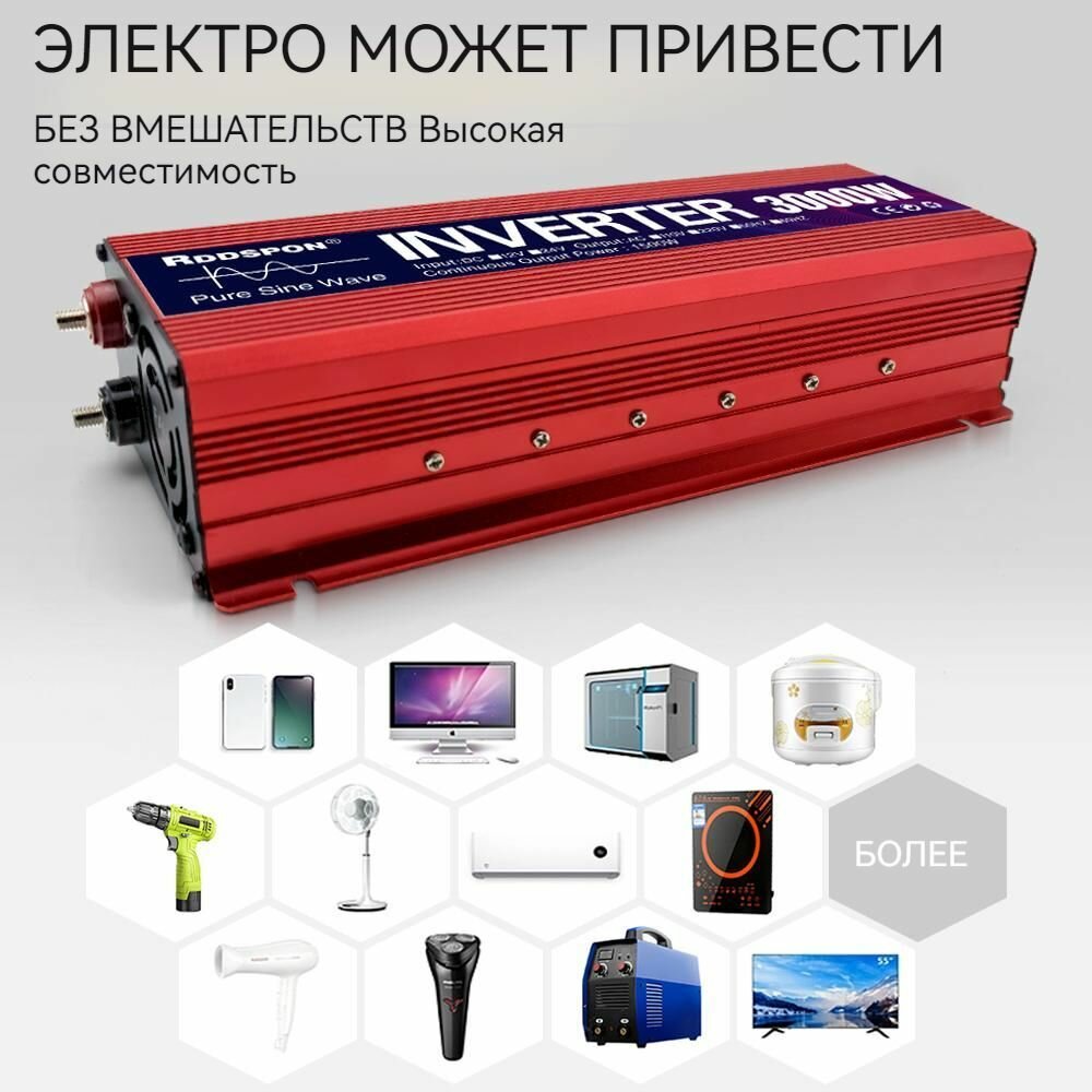 Отзывы на Автомобильный инвертор 3000 Вт, 12 - 220В преобразователь напряжения RDDSPON, чистый синусоидальный инвертор, грузовик