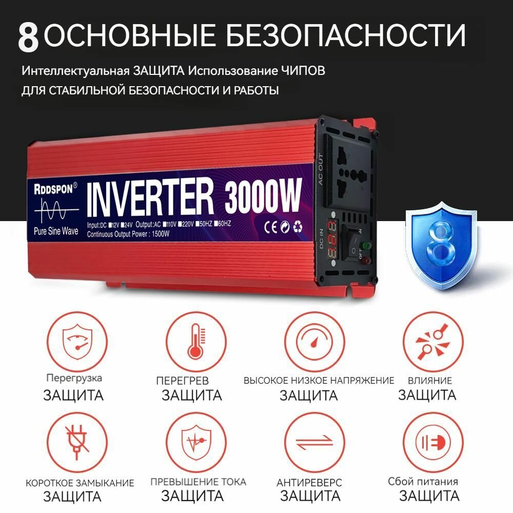 Автомобильный инвертор 3000 Вт, 12 - 220В преобразователь напряжения RDDSPON, чистый синусоидальный инвертор, грузовик 5 222 ₽