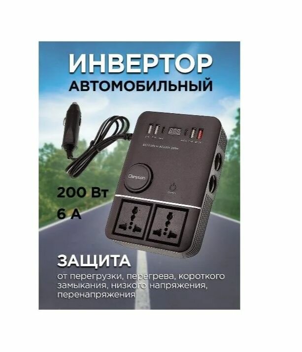 Отзывы на Автомобильный инвертор 12 220V 200W в машину в прикуриватель 4хUSB 2хTYPE-C OLESSON