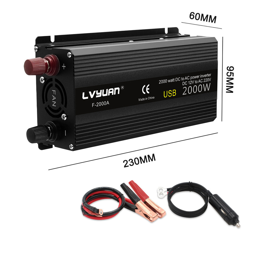 Инвертор автомобильный LVYUAN 2000W 12-220В, 2 USB, ЕС розетка информация: