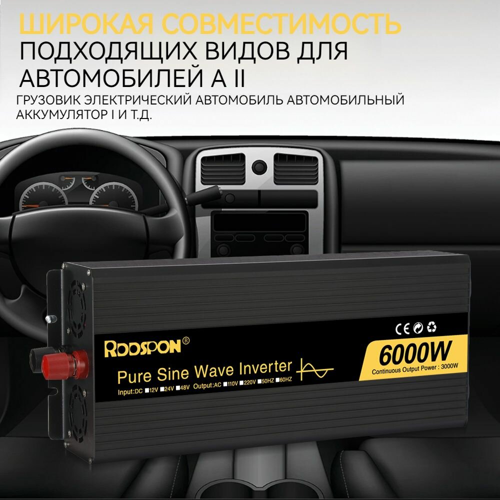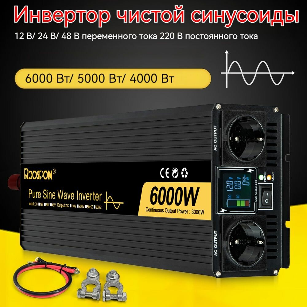 24V / 220 В преобразователь напряжения 6000 Вт Автомобиль RDDSPON инвертор чистый синус кемпинг, электрический информация: