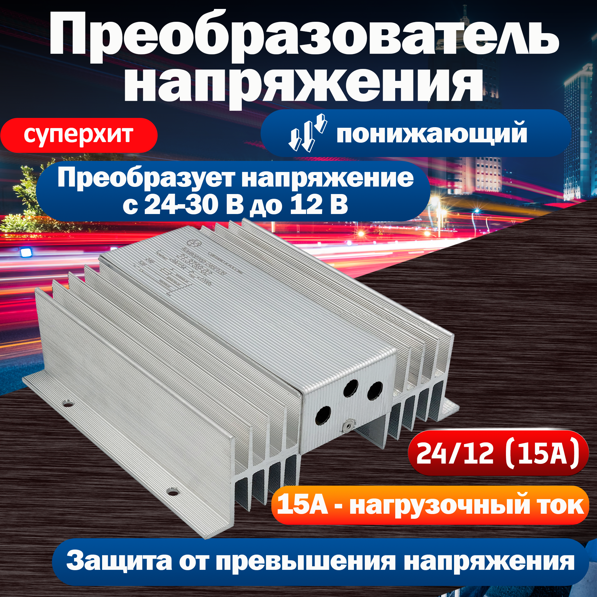 Преобразователь напряжения 24/12-15 автомобильный понижающий информация: