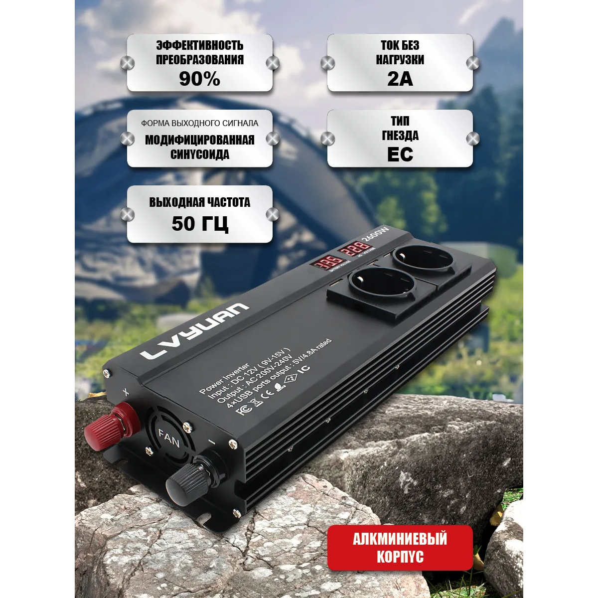 Отзывы на Lvyuan Автомобильный инвертор, преобразователь напряжения, 2600Вт, 12-220 В, с разъёмом 4USB, две розетки ЕС