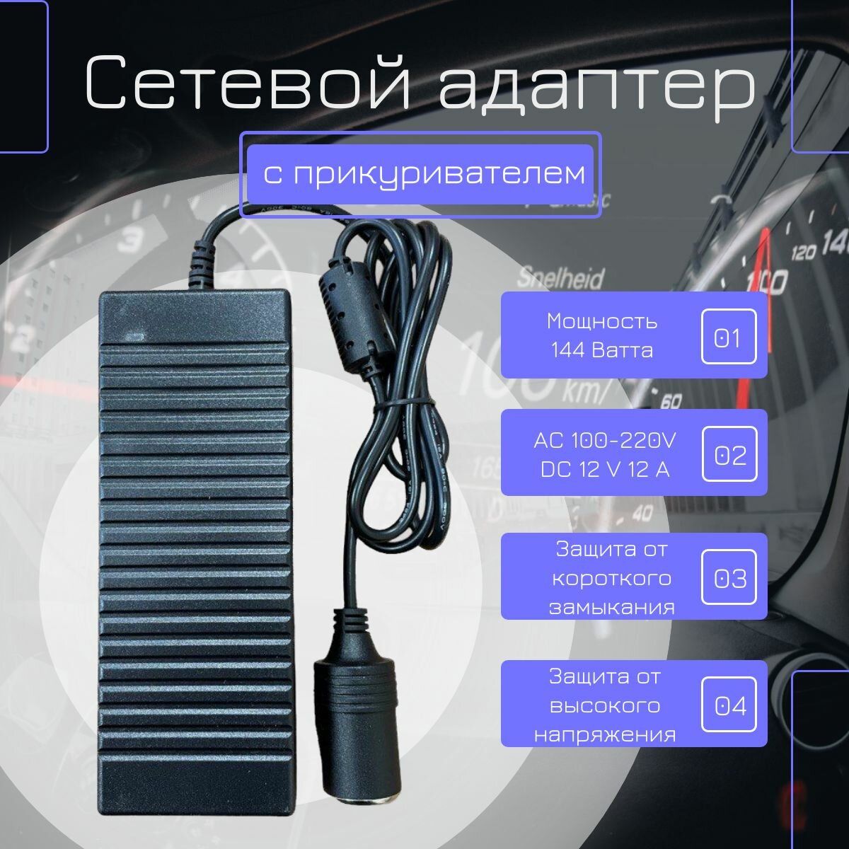 Адаптер сетевой Meltbox, с гнездом для прикуривателя, 220/12В, 12А информация: