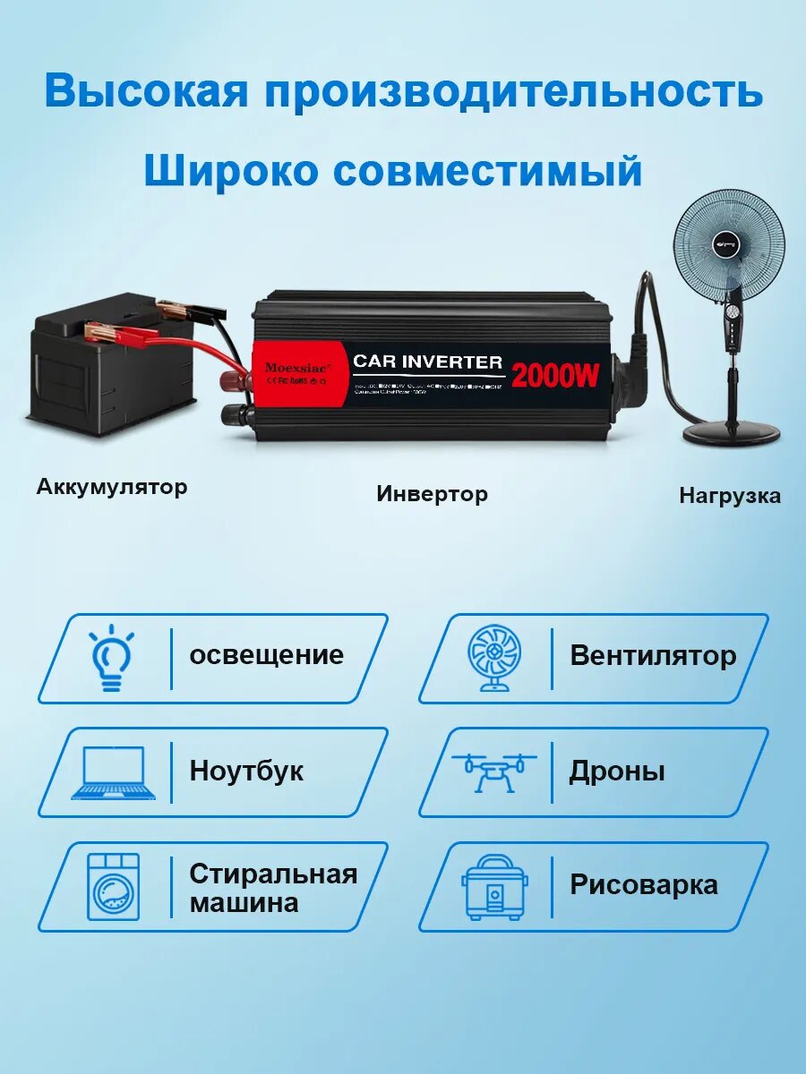 10 цен на Автоинвертор 2000W 12V - 220V, преобразователь напряженияАвтоинвертор 2000W 12V - 220V, преобразователь напряжения