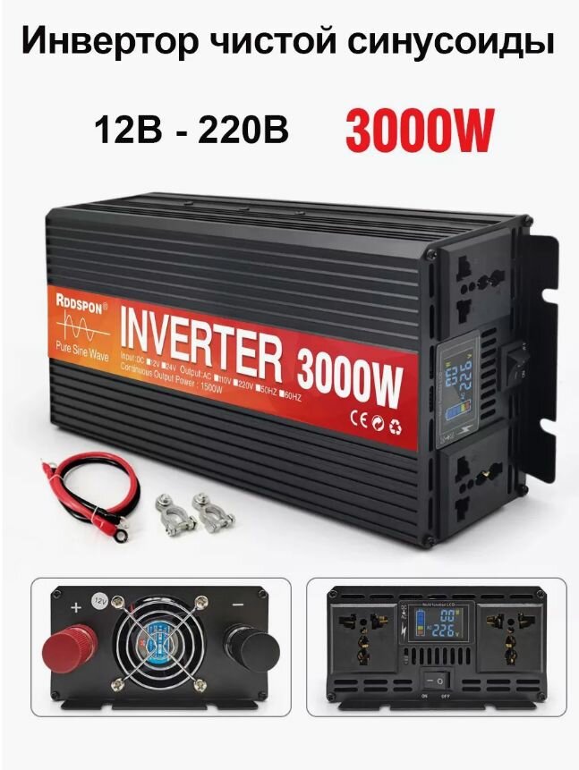 Отзывы на Автомобильный преобразователь напряжения инвертор RDDSPON 3000Вт 12в-220в Чистый синус