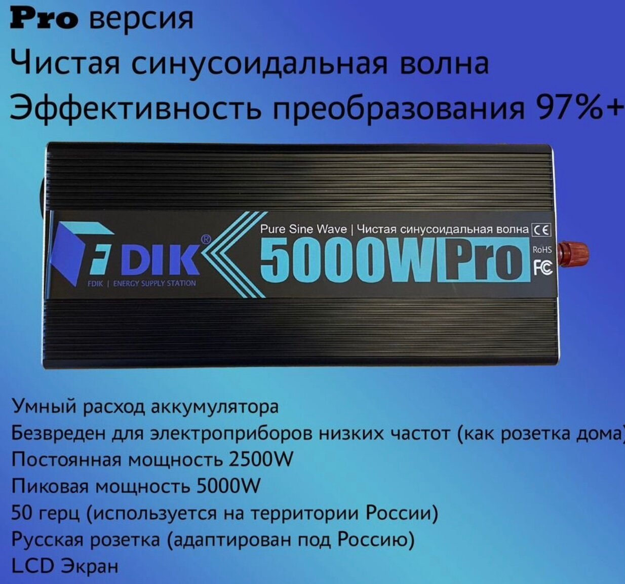 10 цен на Автомобильный преобразователь напряжения инвертор 5000 Вт 12В-220В FDIK Pro Power inverter Чистый синус. Чистая, немодифицированная синусоида