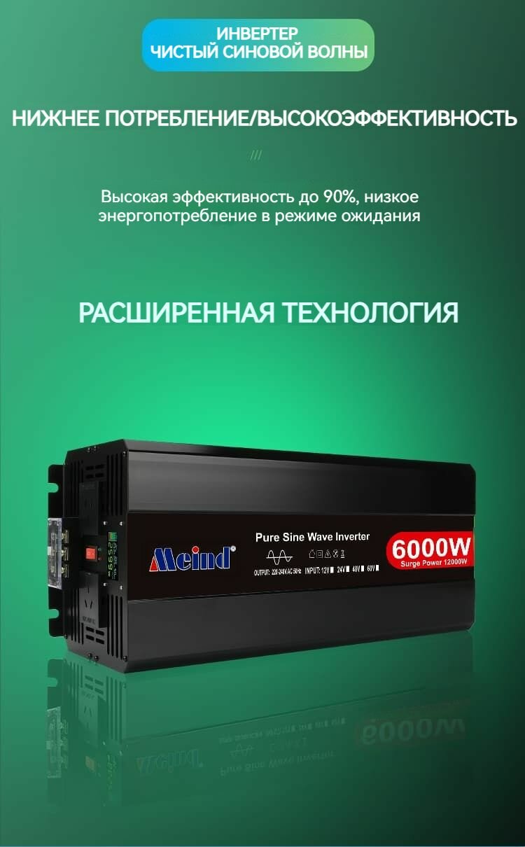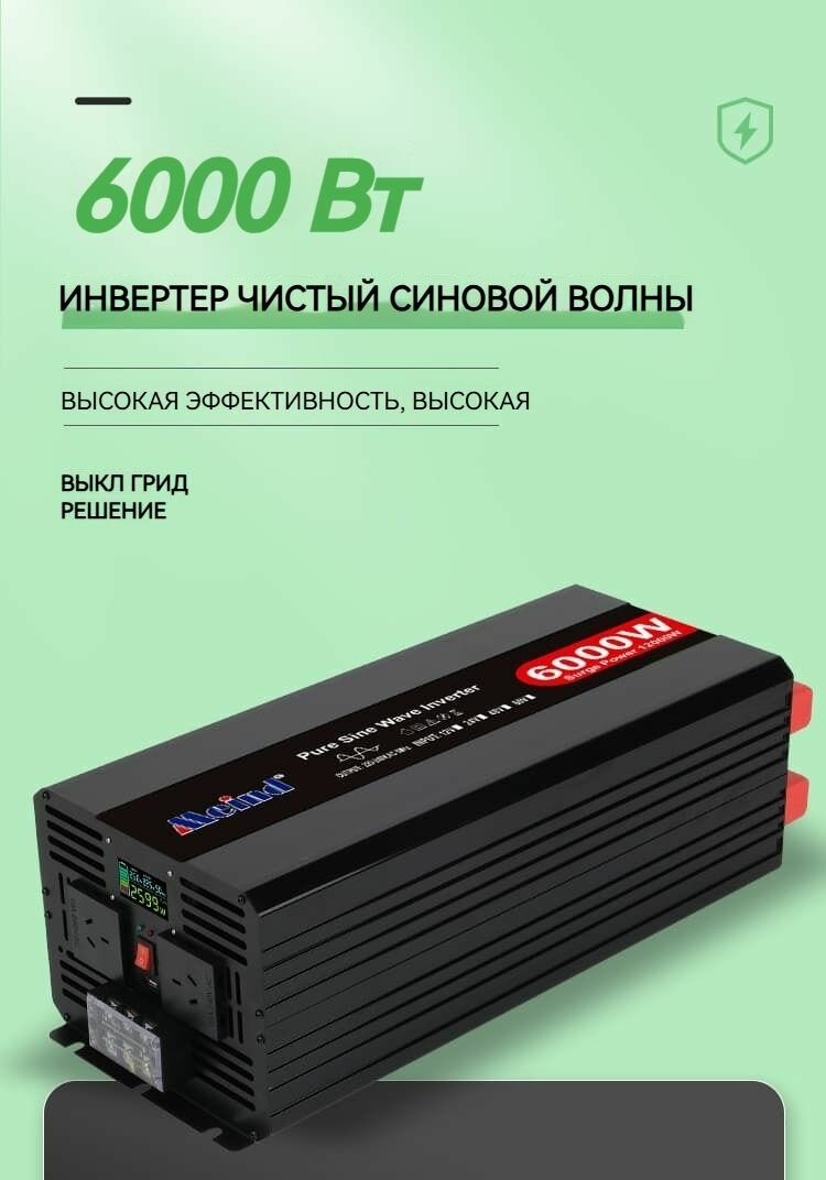 Отзывы на Автомобильный инвертор 6000 Вт 12 В в 220 В с чистой синусоидой, пиковая мощность 12000 Вт с разъемами для аккумулятора