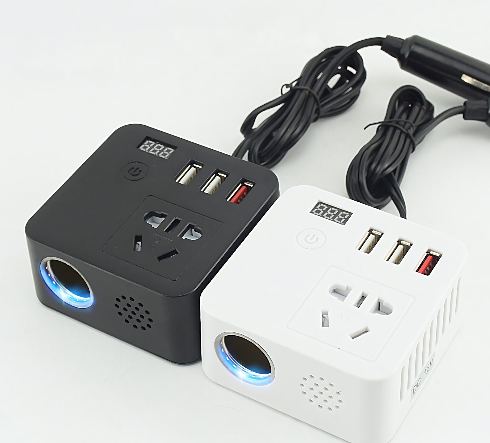 10 цен на Инвертор автомобильный 12/24 В в 110/220В, 150 Вт, смарт-версия с дисплеем и USB QuickCharge 3.0, белый