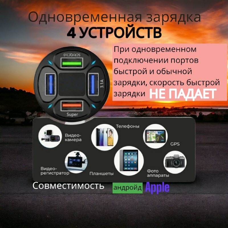 Отзывы на Автомобильное зарядное устройство, адаптер для быстрой зарядки прикуривателя, 4-портовый USB A, круглый