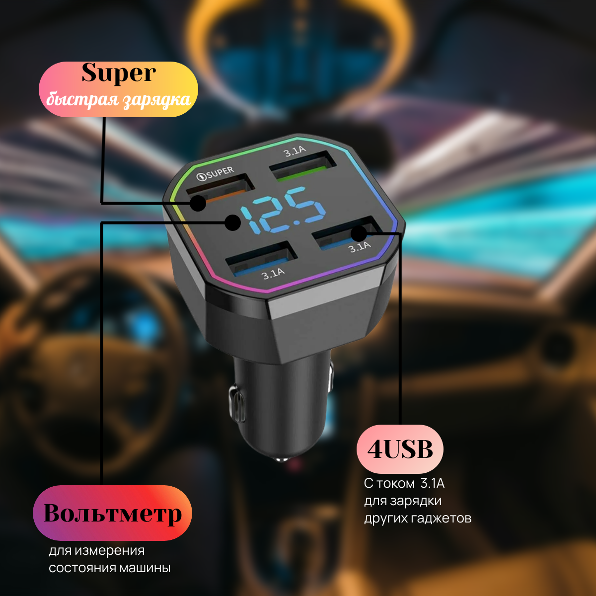 Отзывы на Автомобильное зарядное устройство, 66W, 4 порта, с вольтметром