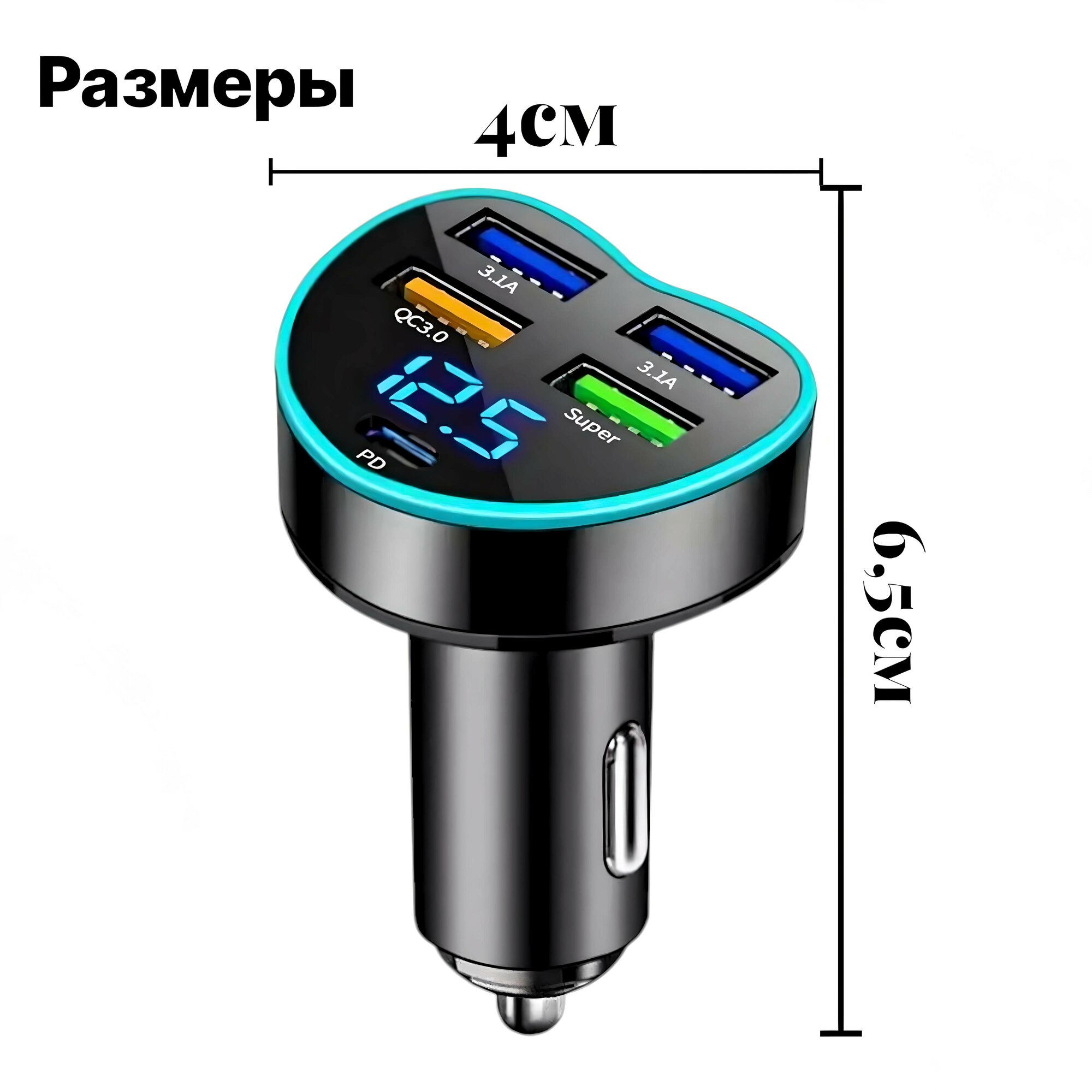 Автомобильное зарядное устройство, адаптер для быстрой зарядки прикуривателя, 4-портовый USB A информация: